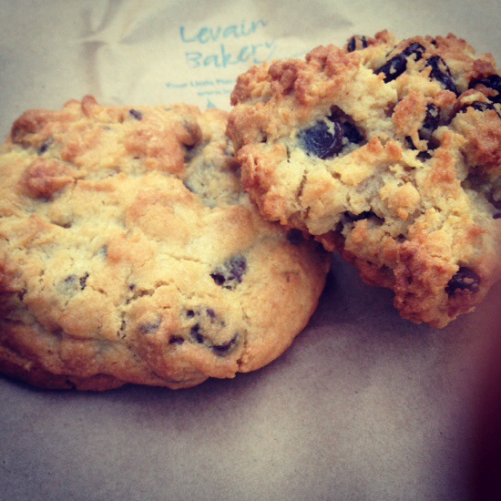 Så, efter lång resa och kö så slog jag till på två kakor. En chocholate chip walnut och en oatmeal raisin. Påsen jag fick i handen vägde väl cirka ett kilo. Det här är inga spröda små rackare förstår ni. De är varma från ugnen när man får dem och de är tjocka, mjuka, saftiga och tunga. Ett litet hörn av varje och jag var mätt i timmar. Gott smakade de också såklart, men jag är rätt säker på att jag skulle kunna baka godare hemma.