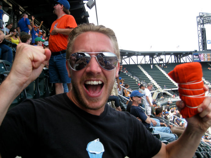 Tror ni att födelsedagspojken var nöjd när han lyckades fånga en Mets-tröja som kastades upp på läktaren?