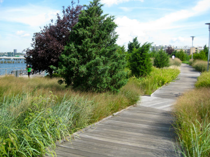 Att följa vattnet, speciellt från Battery Park och längs Manhattans västra sida är något jag rekommenderar å det varmaste. Parken som följer Hudson River hela vägen upp till Manhattan tar slut är väldigt fin och varierad. Lägg till havsdoften, Frihetsgudinnan och skyskraporna på både New York-sidan och New Jersey-sidan så är upplevelsen komplett.