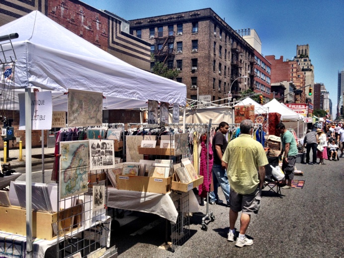 Sommarmarknaden som varje söndag upptar en del av en avstängd aveny på Manhattan fanns idag på 8th Avenue. Som Hästveda marknad ungefär, fast i lite mer exotisk miljö. Det jag gillar bäst är att man utan att riskera livet kan stå mitt i gatan och titta längs den oändligt långa spikraka avenyn, kantad av skyskrapor. Jag hittade dessutom ett stånd som sålde 4 Essie-nagellack för 10 dollar. Kap.