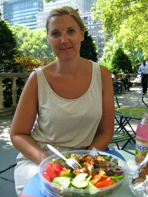 Jag sitter kvar ett tag, låtsas läsa lite i min bok, men sitter mest och tjuvlyssnar på personalen och på andra gäster. Snart kommer det ett svenskt par in på restaurangen och slår sig ner vid bordet bredvid mitt. Då lägger jag ner min svenska bok i väskan och ber om notan. Jag vill inte att något ska bryta förtrollningen av att jag bara är en New Yorker som poppat in på haket på hörnan, för vad som förmodligen är stans bästa burgare.