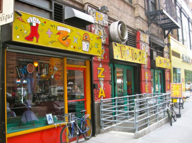 På Two Boots som finns på ett tiotal ställen på Manhattan och i Brooklyn hittar ni den rockigaste pizzan i stan. Pizzorna är döpta efter kända musiker, skådespelare och New York-kändisar.