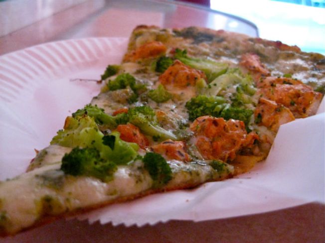 En slice med tandorikyckling, broccoli och mozzarella och vilken bakisdag som helst är räddad för den ynka summan av 2 dollar.