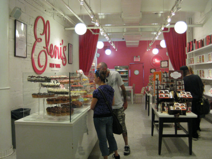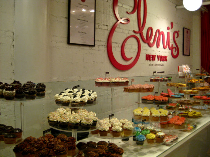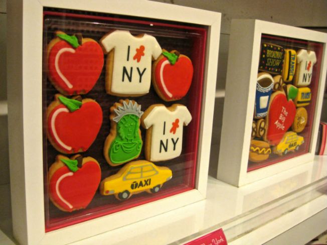 Eleni’s rosa butik ligger i Chelsea Market i Meatpacking District. De har dels cupcakes men framförallt har de dekorerade kakor av olika slag och former. Nog inte så gott, men fint att titta på.