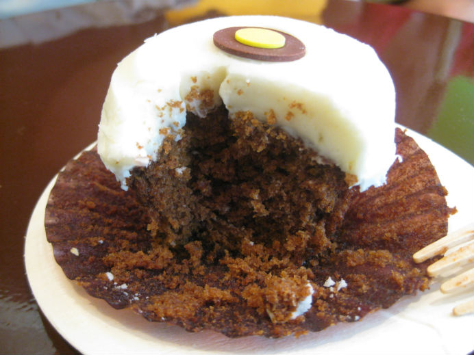 Vi valde den enda som fanns i en mindre version, en simpel vaniljcupcake med chokladfrosting och den var helt makalöst god. Och brownien med kokostäcke var inte en smula sämre. Rekommenderas verkligen om man har vägarna förbi 76:e och Amsterdam. Billigt var det också, vi fick hela kalaset plus två kaffe för under 70 kronor.