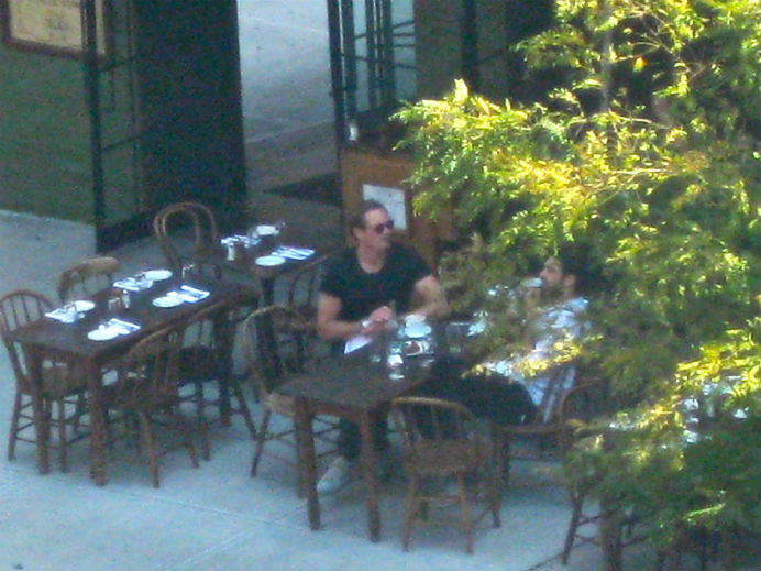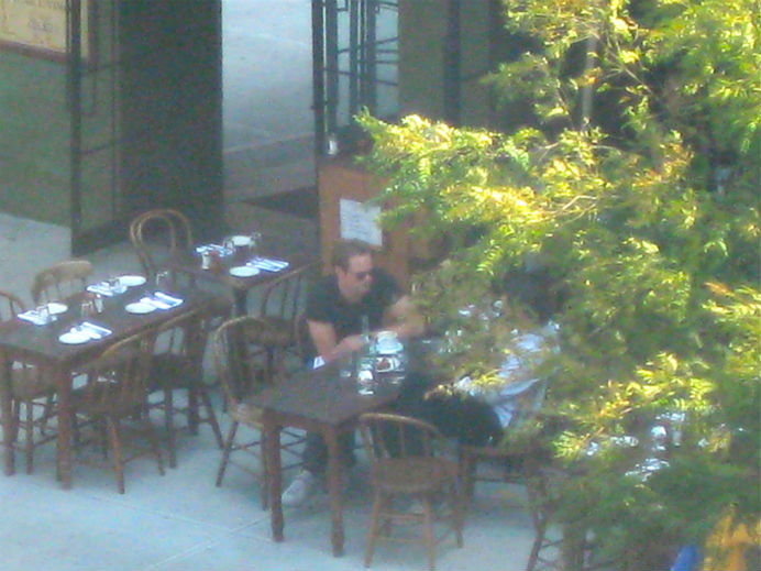 Ok, det här är kanske inte mitt stoltaste ögonblick, men när jag inser att Alexander Skarsgård sitter på Gemmas uteserving på Bowery Hotel precis mittemot min lägenhet så kan jag inte låta bli att ta några paparazzibilder från fönstret.