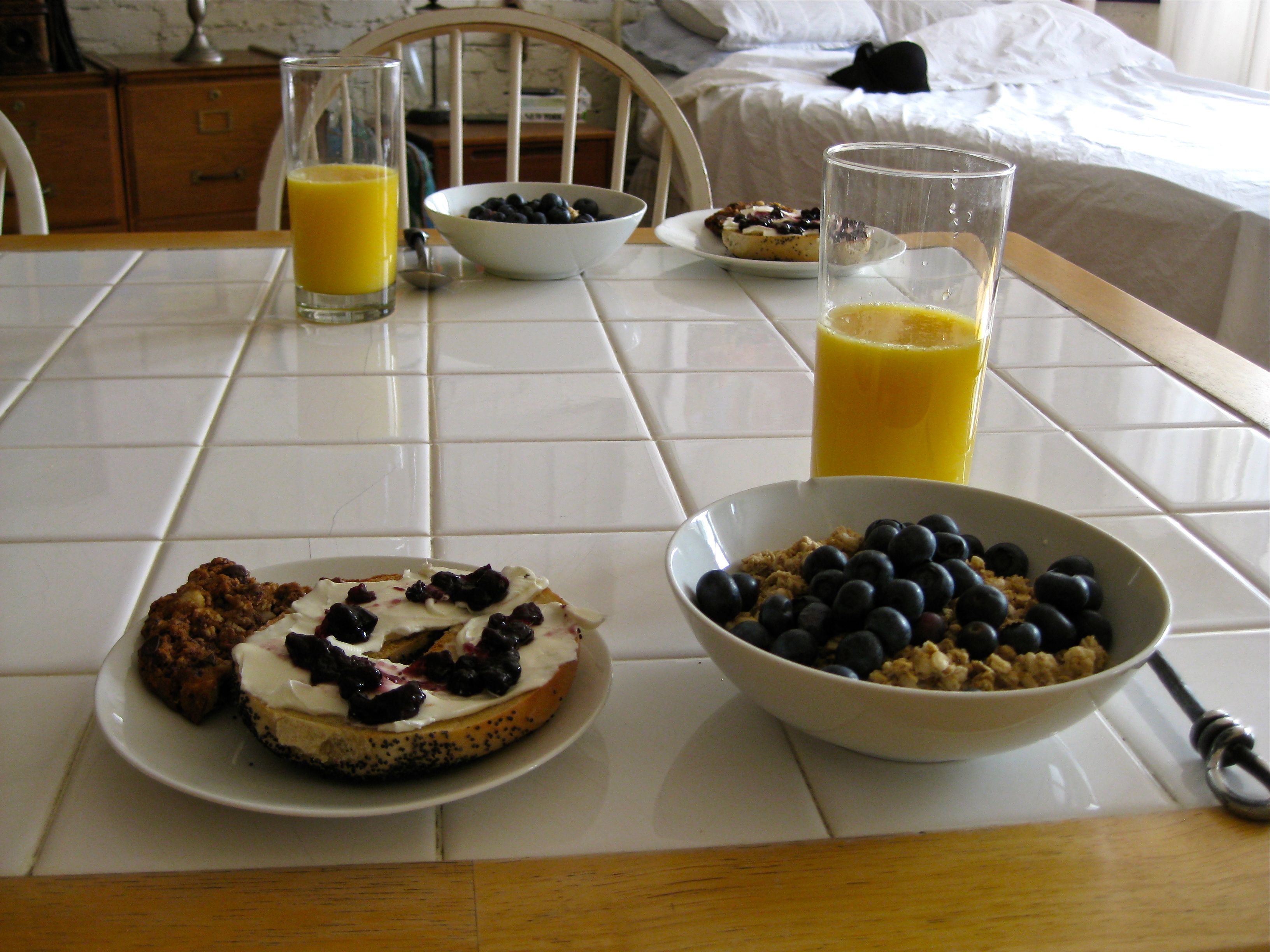Jag gillar verkligen att ha min egna lägenhet här, det blir en helt annan upplevelse än att bo på hotell. Jag älskar att lufsa omkring lite på mornarna, rosta mina egna bagels, handla min egen mat, att komma hem och landa ett par timmar mitt på dagen och sätta mig vid kökbordet med tv:n på i bakgrunden och blogga eller surfa.